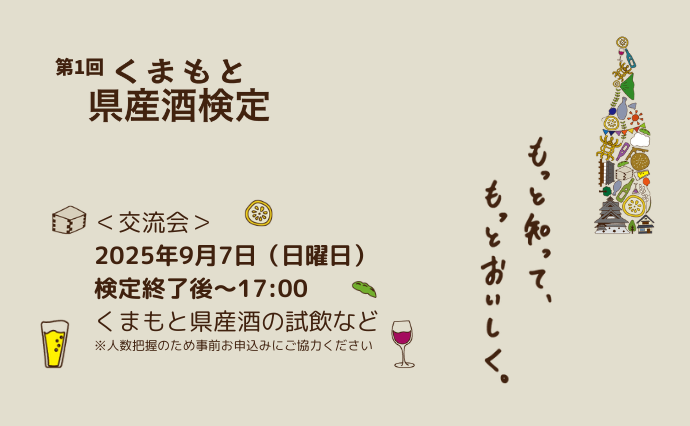 さて、2025年9月7日(日)に開催予定の「くまもと県産酒検定」につきましてご案内いたします。